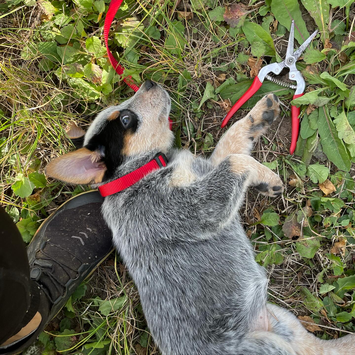 Action-packed, fast, and smart, she is the “chief auditor” of the vineyard. When not on official business, she enjoys digging holes and mulching branches.